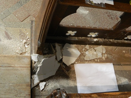 Please note that hard hats should now be worn in the chancel area. Some photographs of the damage can be seen below:
