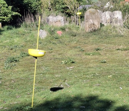 If you happen to wander into the churchyard and wonder if aliens have landed, these strange objects are actually pan traps. A Masters degree student is researching how different types of graveyard management techniques influence pollinator biodiversity within churchyards in Suffolk. These traps will appear for the occasional 24 hours from time to time in the next few months.